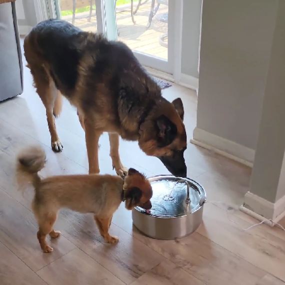 Unlike plastic fountains & bowls that get slimy and gross (you know that weird film that builds up?), stainless steel naturally resists bacteria and mold, and doesn't have to be cleaner as often.